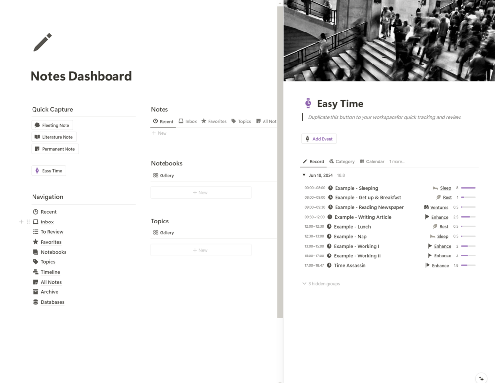 Time Assassin seamlessly integrates with Notion's Side Peek, blending perfectly with your workflow.